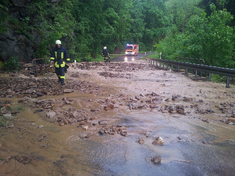 Ám 09.06.2013 wurde die Feuerwehr Mauersberg auf die Talstraße zwischen Großrückerswalde und Niederschmiedeberg alarmiert. Am Einsatzort floß ein sonst kleiner Bach auf 20 Meter Breite über die Straße und spühlte sehr viel Geröll auf die Fahrbahn. Die Feuerwehr Mauersberg räumte die Straße mit Schaufeln und der Hilfe eines Radladers und machte den Durchfluss unter der Straße wieder frei.