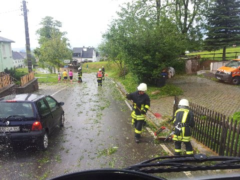 An insgesamt 12 Einsatzstellen wurden Bäume oder Äste von der Straße geräumt. Gullydeckel gereinigt und Straßenabschnitte gekehrt. Auch die FF Streckewalde musste vier Bäume entfernen.