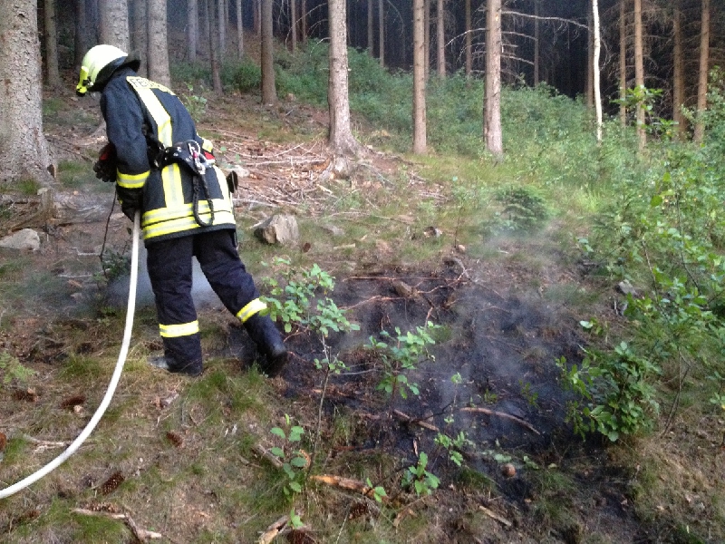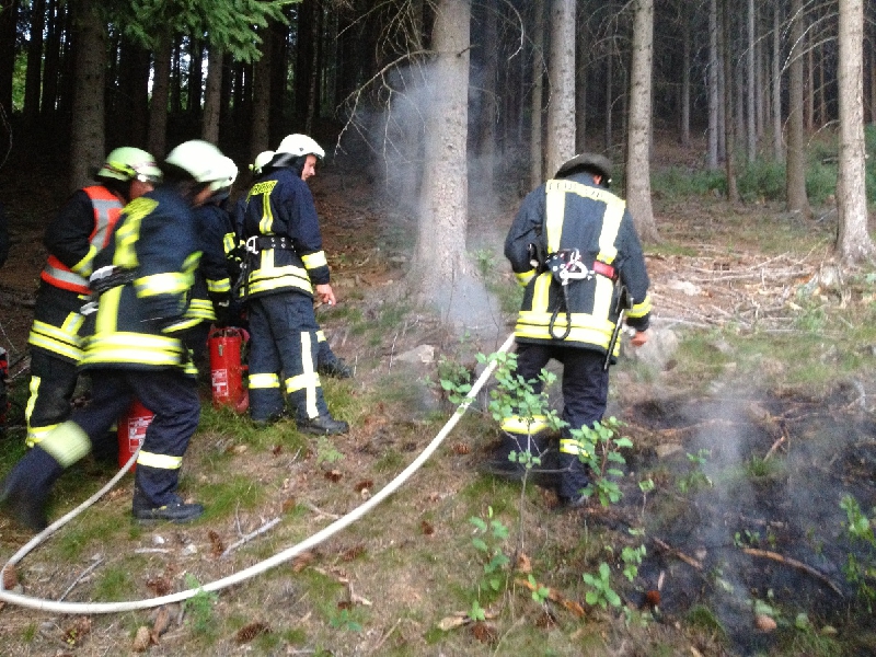 Unklare Ursache zum Ausbruch eines Flächenbrandes von ca. 10 Quadratmeter Fläche. Gemeldet durch den Reitsportverein, dessen Mitglieder bei einem Ausritt das Feuer an der abgelegenen Stelle entdeckten.