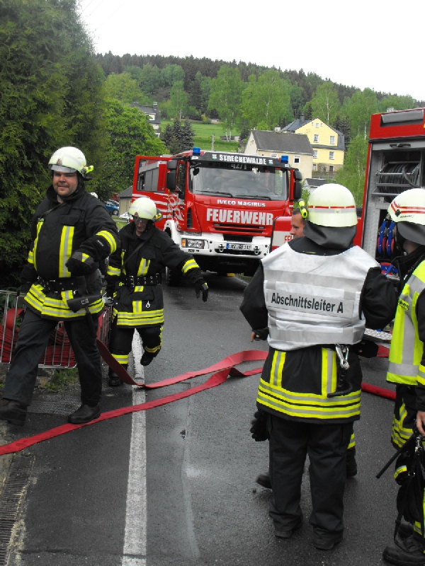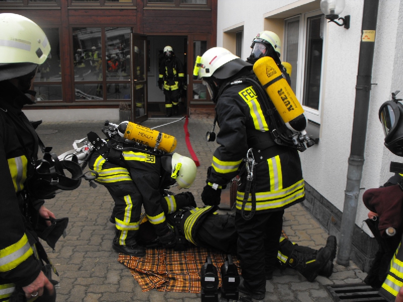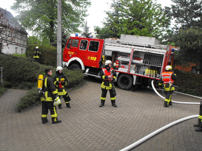 Die jährliche Einsatzübung der Gemeindewehren fand zum zweiten Mail nach 1999 im Blaukreuzhaus Schindelbach statt. Nach Absprache mit dem Heimleiter gingen wir von einem Kellerbrand aus, bei dem ein Gebäudeteil vernebelt ist und vier Personen als vermisst galten. Einsatzschwerpunkte waren der Innenangriff, Verletztenversorgung, Überdruckbelüftung sowie der Aufbau der Wasserversorgung von einer neuen Zysterne im Ortsteil Schindelbach. Einsatzleiter und Gemeindewehrleiter Sebastian Hilbert zeigte sich mit dem Ergebnis der Übung sehr zufrieden. Details werden innerhalb der Leitungskräfte geklärt. Besonderer Schwerpunkt bei der Erarbeitung eines Einsatzkonzeptes ist die Fahrzeugaufstellung im Ernstfall, da die Straßen vor Ort sehr eng sind.